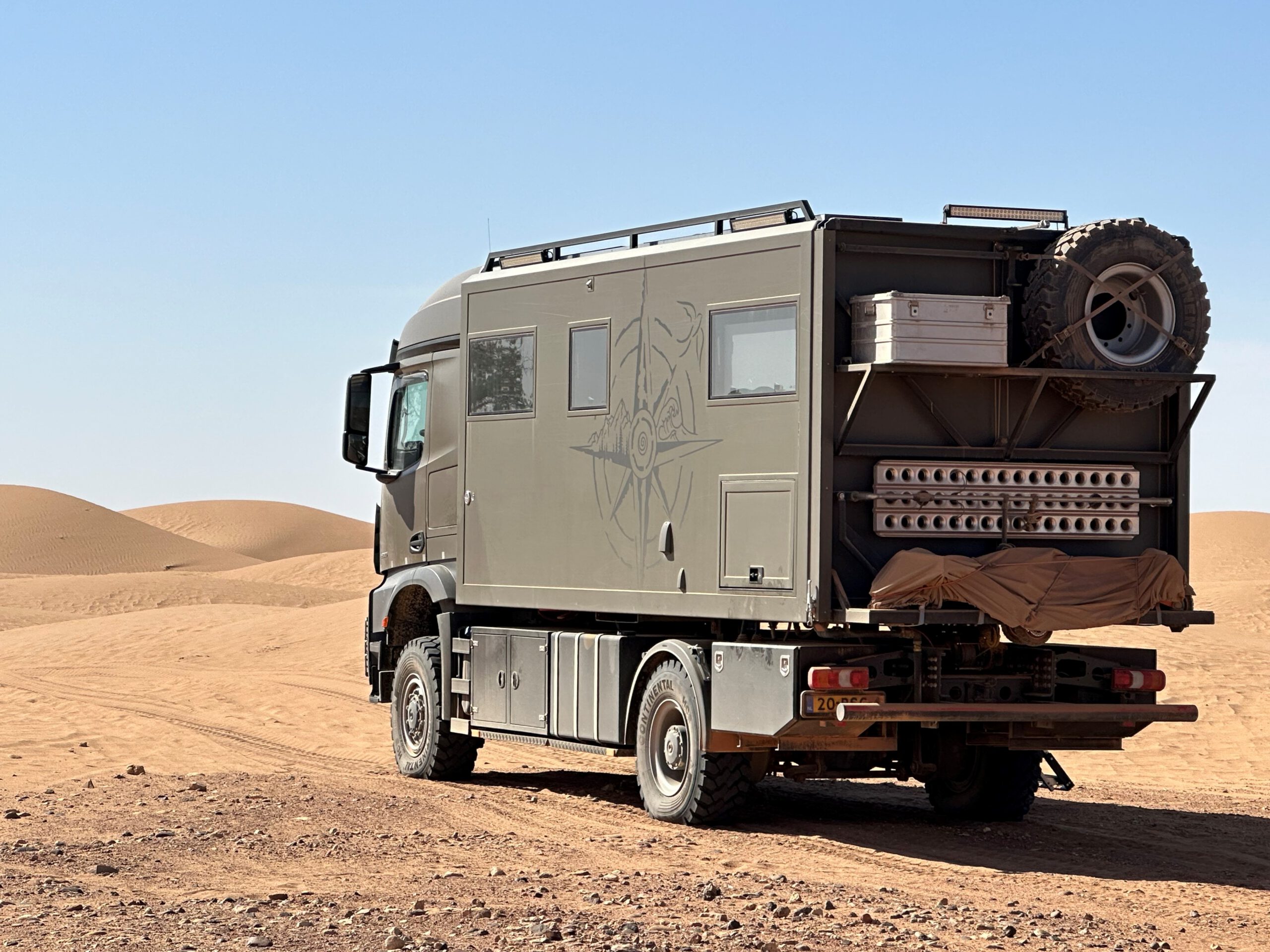 Our Mercedes Arocs 1836 4×4 is meticulously outfitted for rugged conditions and ultimate comfort. From a fully equipped kitchen to navigation tools and spare parts, our trucks are ready for any off-road excursion. We provide a comprehensive packing list to ensure you’re fully prepared for your journey.